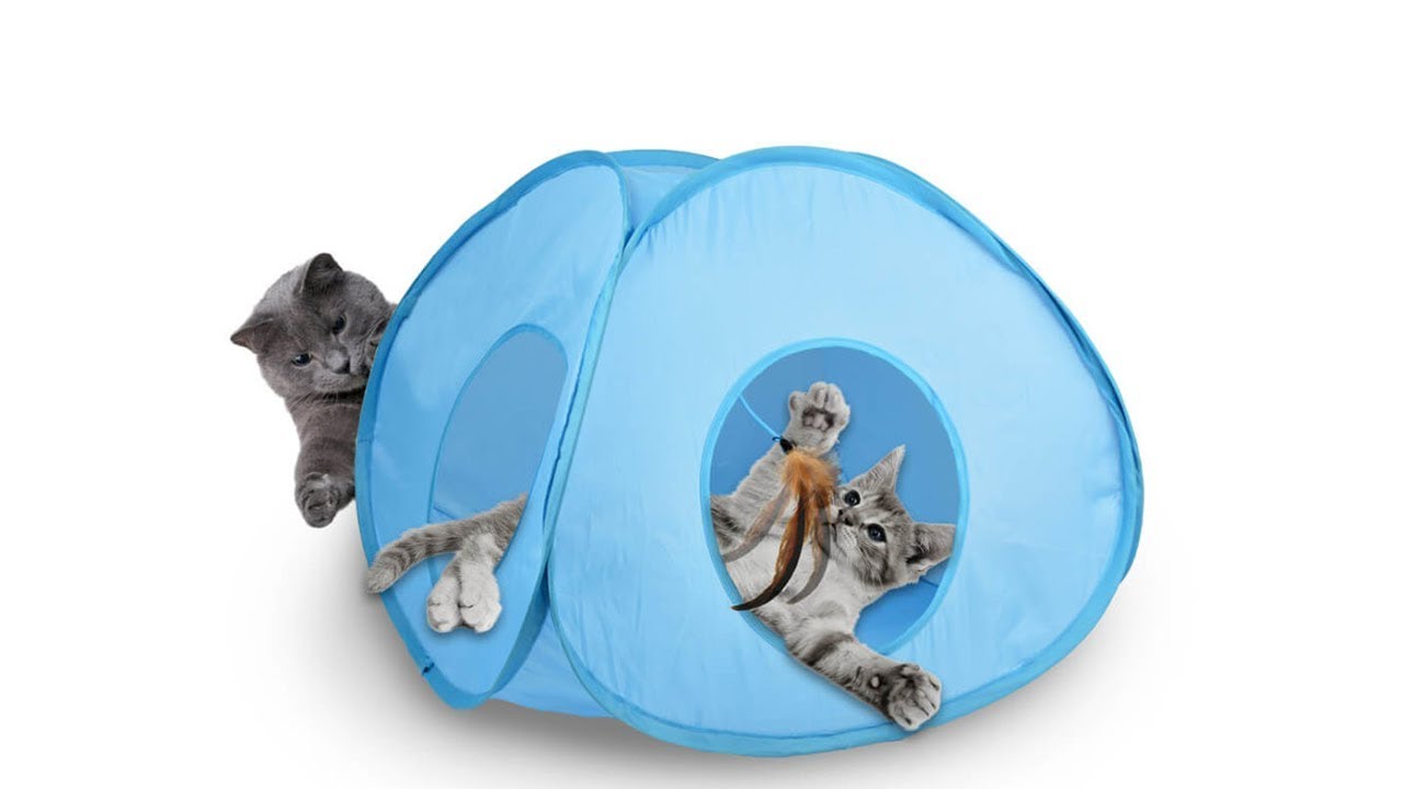 The spinning feather of the Pounce House™ teases your cat into action while the large hunting holes give them full access to bat, claw, and pounce on their prey.