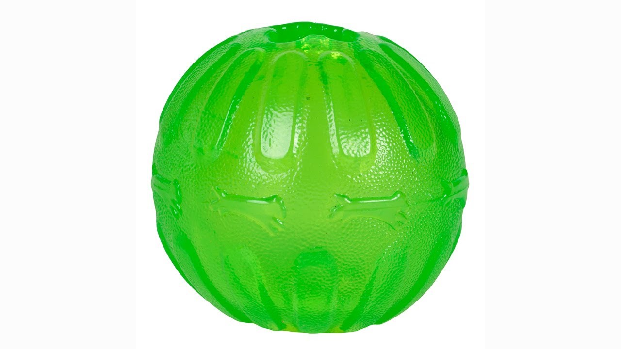 Extremely durable, but soft in your dog's mouth, the Treat Dispensing Chew Ball is ideal for feeding your dog his meals or retrieving. Use our unique Interlocking Treats in each end. Increase the challenge by adding smaller treats inside. Stronger than rubber! Great for powerful chewers. Free of latex, vinyl & phthalates. Chew ball system encourages play which helps reduce anxiety and boredom behaviors.