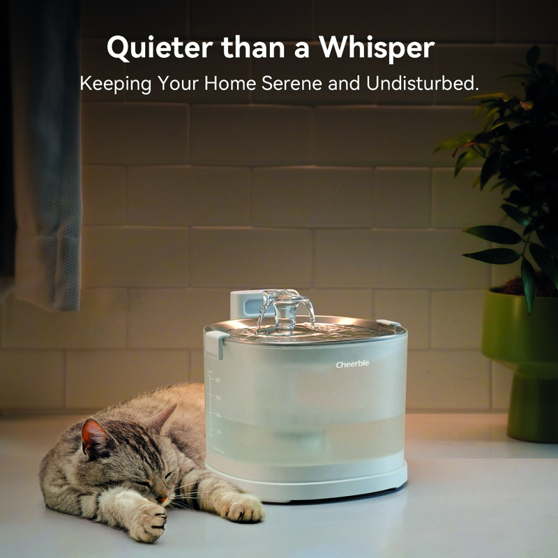 Dank der pumpenlosen MagDrive-Technologie ist der Cheerble Elfin E1+ ultraleise, extrem energiesparend und lässt sich mühelos reinigen. Gönnen Sie Ihrem Haustier frisches, sauberes Wasser für mehr Wohlbefinden und eine ideale Hydration!