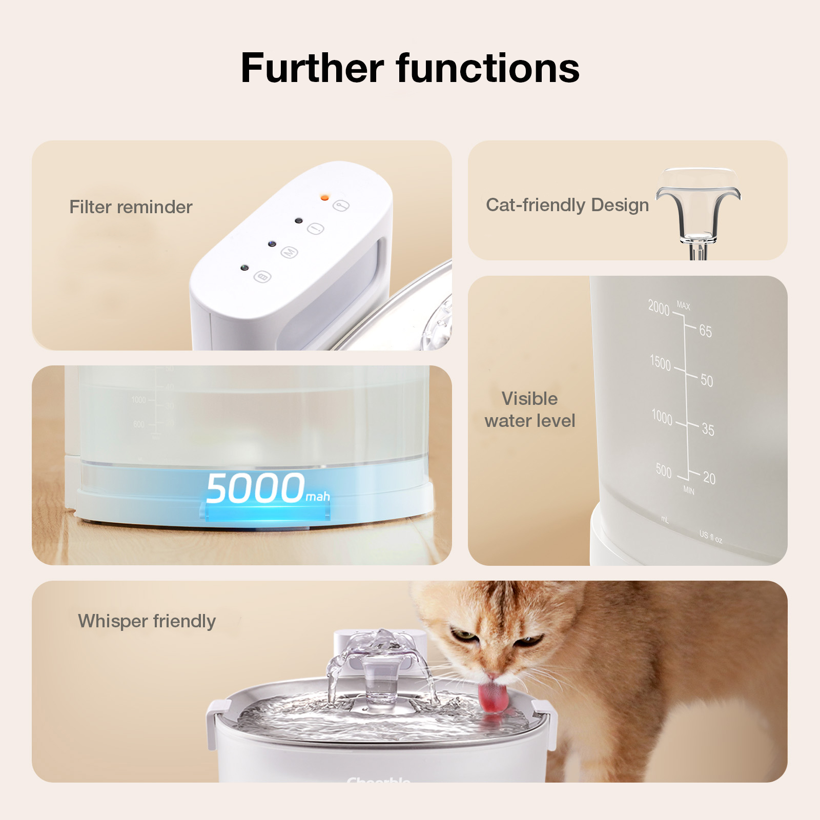 Revolutionieren Sie das Trinkerlebnis Ihres Haustiers mit dem Cheerble Elfin E1+! Dank des dreifachen Filtersystems versorgt der innovative Trinkbrunnen Hunde und Katzen konstant mit frischem, sauberem Wasser. Das fördert nicht nur das Trinkverhalten, sondern auch das Wohlbefinden Ihres Vierbeiners!