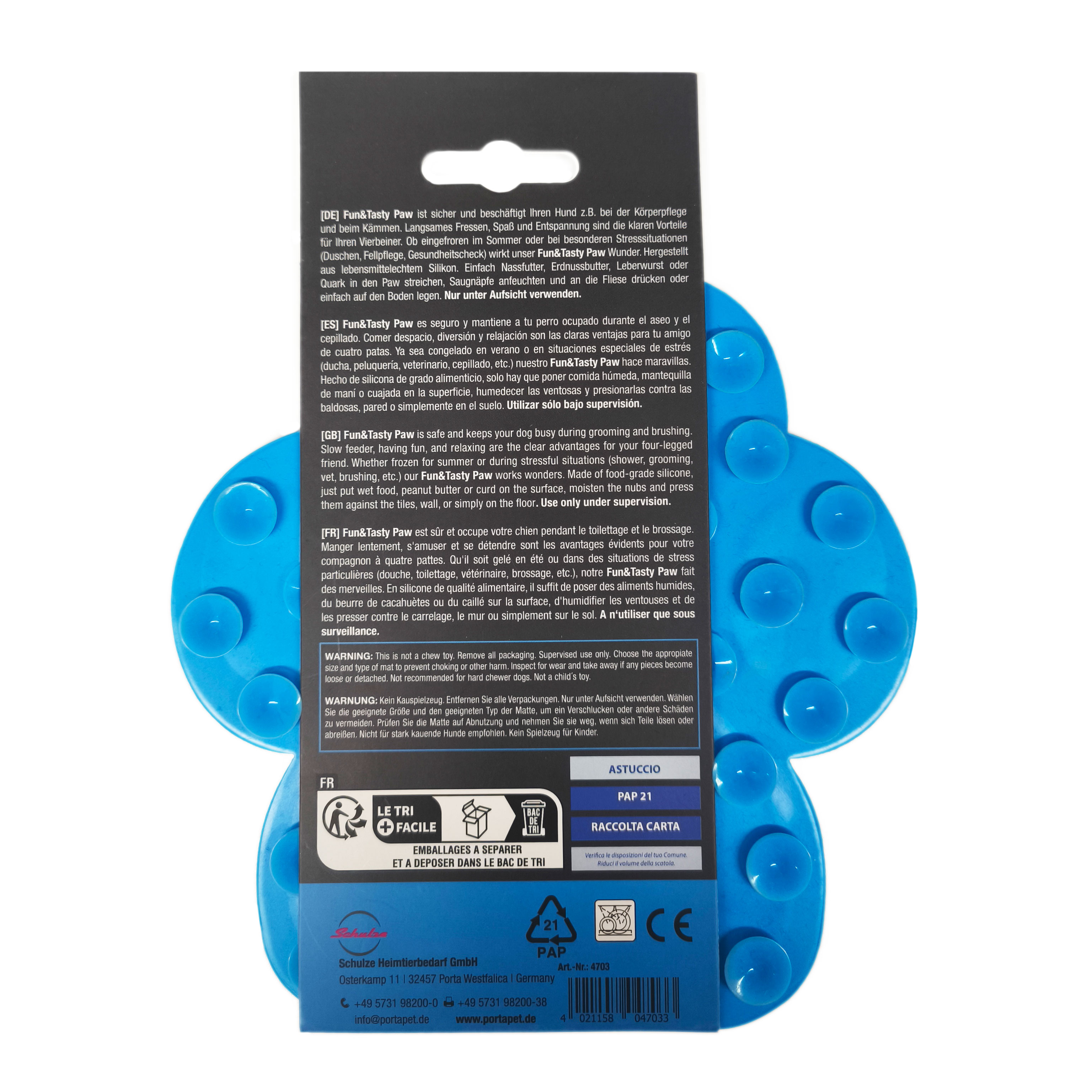 Ob im Sommer gefroren für heiße Tage oder in stressigen Momenten wie beim Baden, der Fellpflege oder Gesundheitschecks eingesetzt, erweist sich unser Fun & Tasty Paw als äußerst effektiv. Hergestellt aus lebensmittelechtem Silikon. Einfach Nassfutter, Erdnussbutter, Leberwurst oder Quark in den Paw streichen, Saugnäpfe anfeuchten und an die Fliese drücken oder einfach auf den Boden legen. Los geht´s.